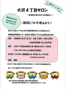 第1回目の集いを令和8年1月21日 ; 13:30~15:30大沢4丁目自治会館で開催します。